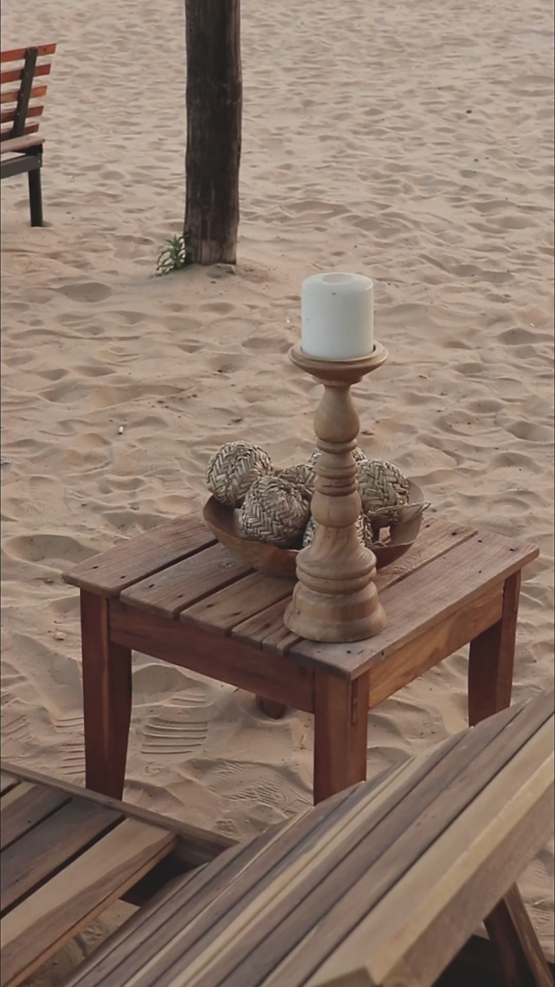 Material: Realizada en madera Guayubira maciza con tratamiento artesanal que simula el envejecimiento natural de la madera